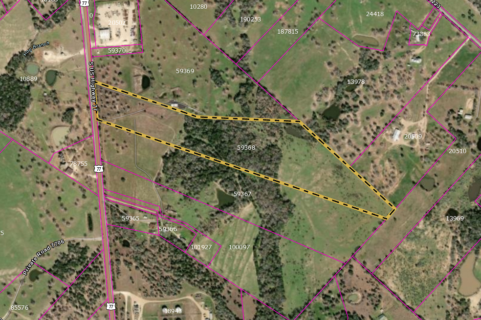 Water service is available through Lee County Water, with a meter and tap fee of approximately $7,200. The buyer also has the option to drill a well, subject to regulations set forth by the Lost Pines Groundwater Conservation District. Electricity is readily available at the property boundary along Highway 77. The available survey is outdated, but the Title Commitment is available upon request.